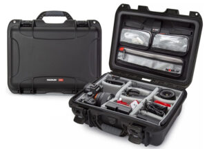 This is a waterproof hard case with lid organizer and padded dividers. I use this to hold and store my microphones, recorder, cables, and field recording accessories.